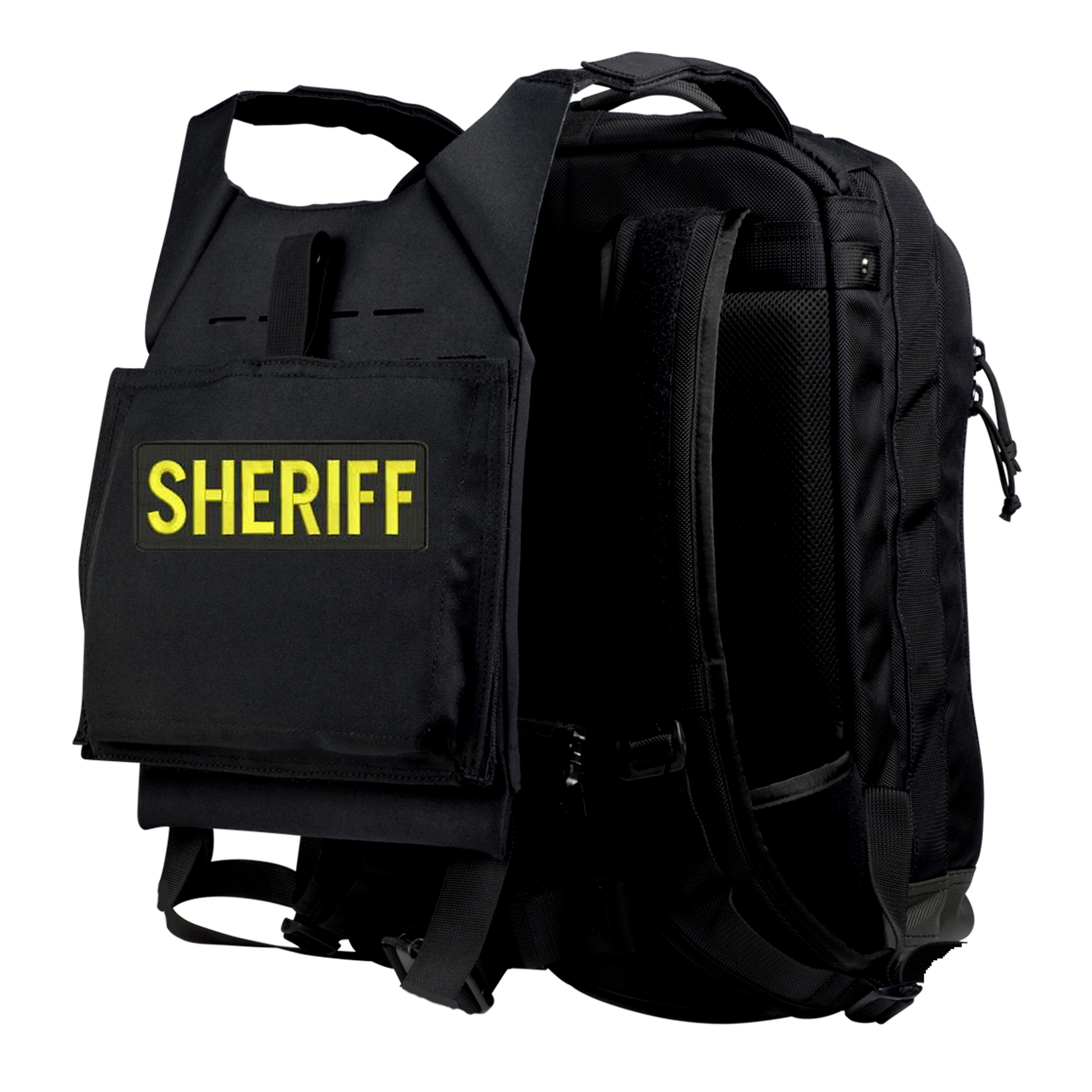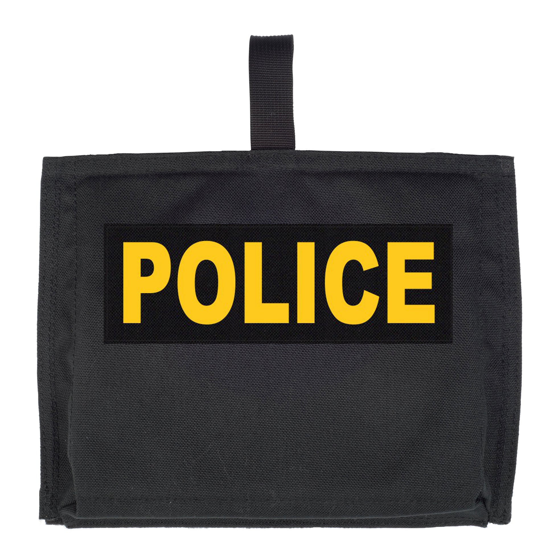 The front of the chest holster has a Velcro rectangle for applying agency identification patches.
